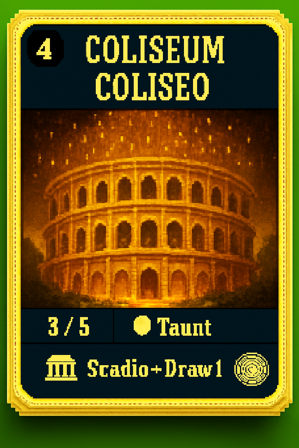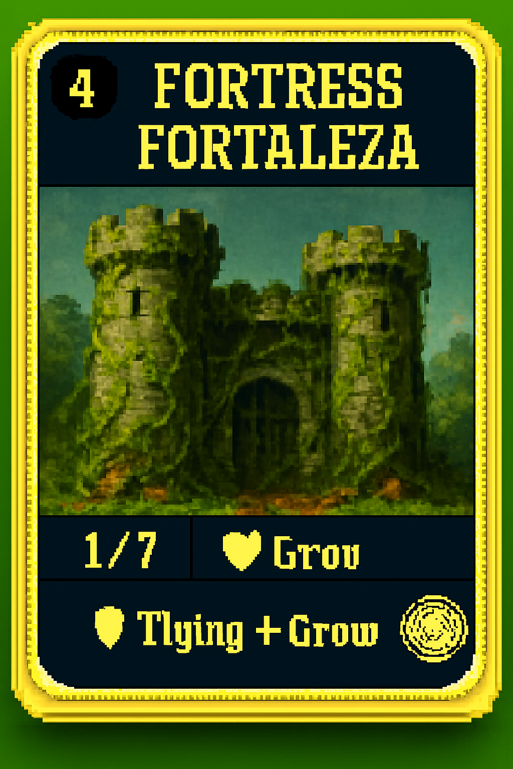 Arma tu deck de exactas 20 cartas del pool compartido de 40 (criaturas + conjuros con Taunt, Flying, Reach, Provoke, ETB, Grow, Stadium y Deathrattle). Empieza con 10 vidas, genera poder auto (1-5 por turno). Summoning Sickness nerfea aggro: nuevas criaturas no atacan el turno 1.